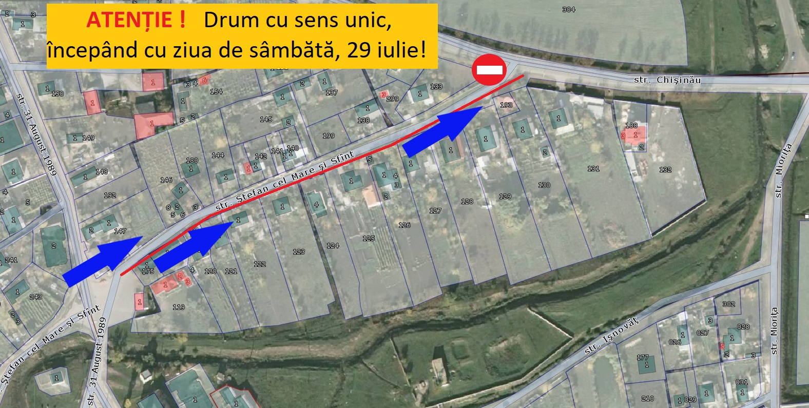 Pentru fluidizarea traficului rutier, începând cu ziua de sâmbătă, 29 iulie, str. Ștefan cel Mare și Sfânt din or Sîngera, pe tronsonul cuprins între str. 31 August 1989 (Oficiul Poștal) și str. Chișinău devine drum cu sens unic cu direcția de deplasare dinspre str. 31 August 1989 (Oficiul Poștal) spre str. Chișinău (sens invers decât a fost până pe 29 iulie).