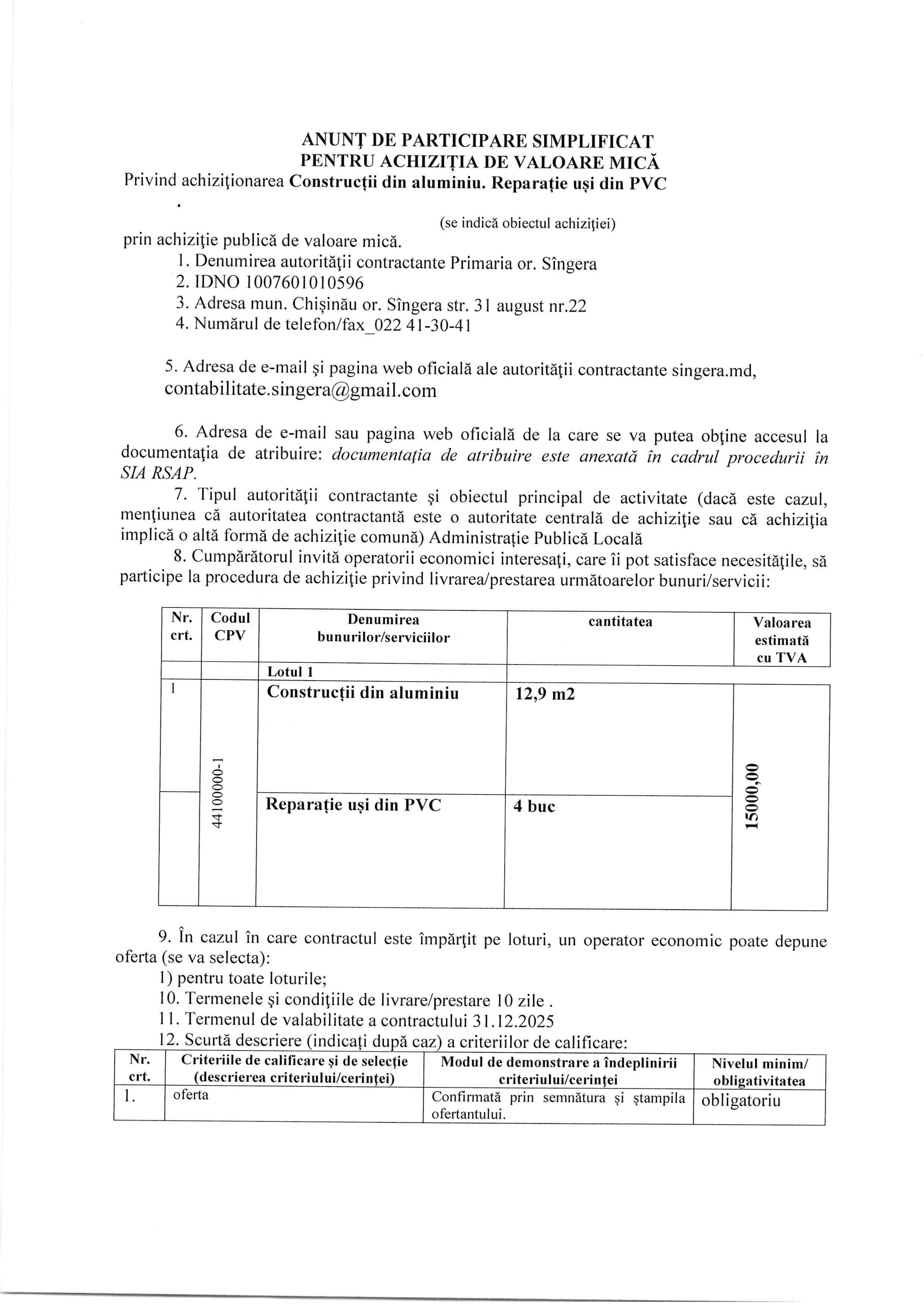Anunț de participare! Privind construcții din aluminiu Rераrаțiе uși din РVC