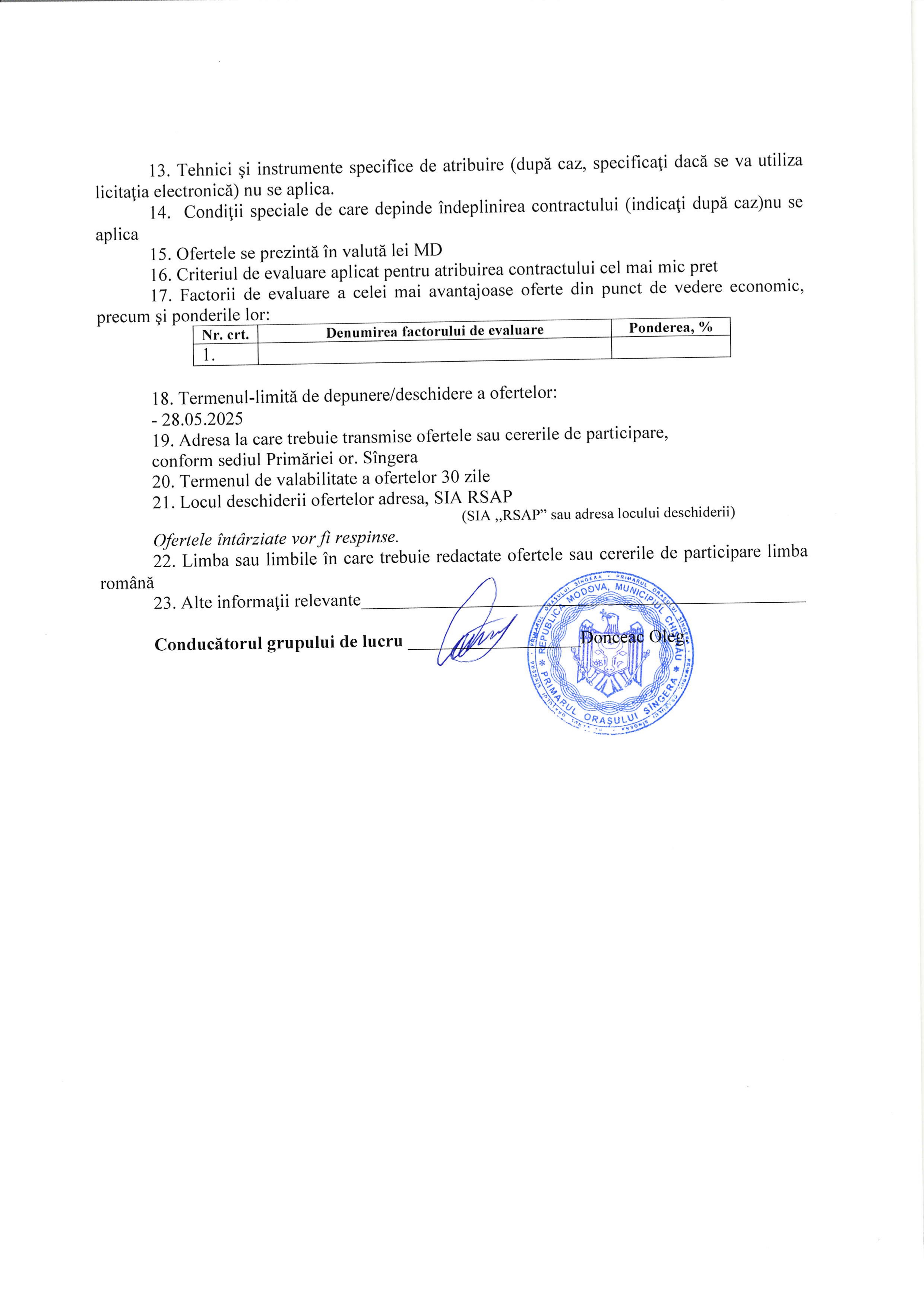 Anunț de participare! Privind servicii de reparație a podețului avariat str. Orhei, or. Sîngera