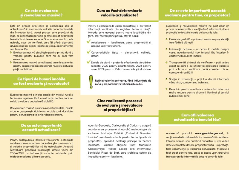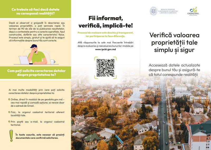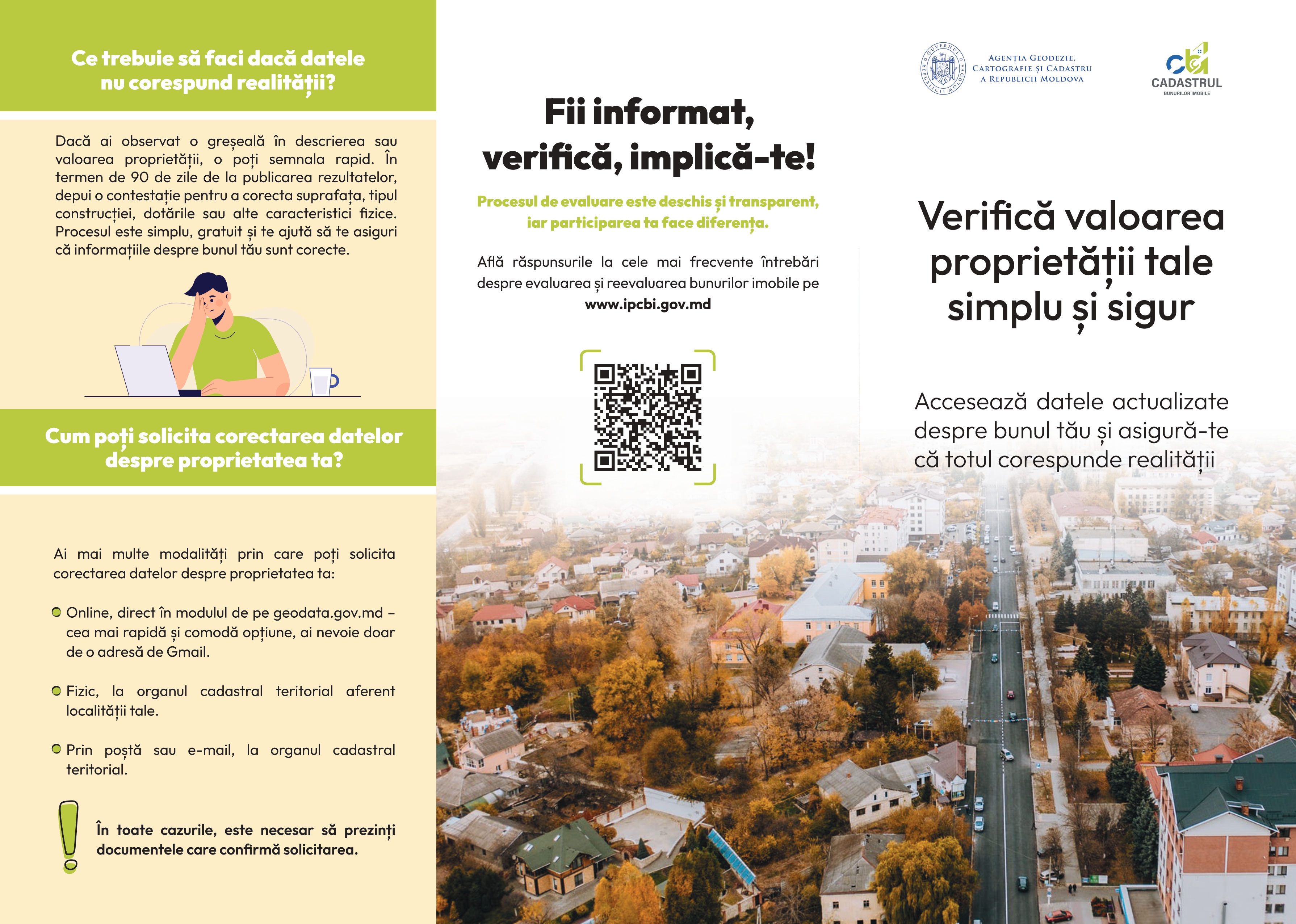Agenția Geodezie, Cartografie și Cadastru (AGCC), împreună cu Instituția Publică Cadastrul Bunurilor Imobile, a finalizat evaluarea și reevaluarea bunurilor imobile la nivel național și lansează consultări publice pentru verificarea rezultatelor preliminare.Perioada de consultări: